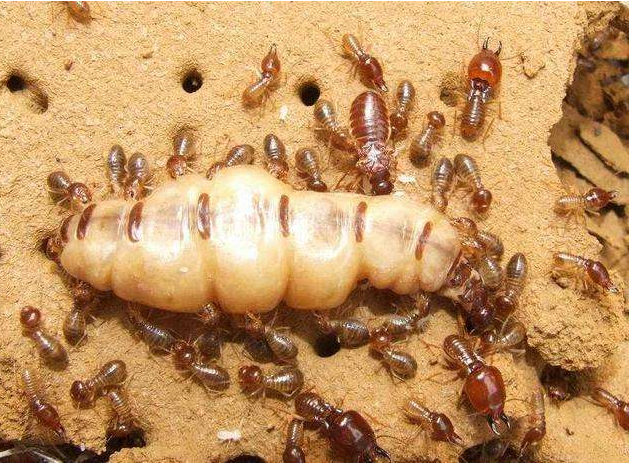 首先,是白蚁的群居特性。在这一点上,白蚁很象那些蚂蚁和蜜蜂。无论是白蚁、蜜蜂还是蚂蚁都不是单居独行的,而是一群同类虫子居住在一个巢里。我们将居住生活在一个巢居里的群白蚁称为一个白蚁群体。一个白蚁群体包括至少十百头白蚁,多的则成千上万,甚至数十万、上百万头白蚁聚居于一个白蚁群体里。