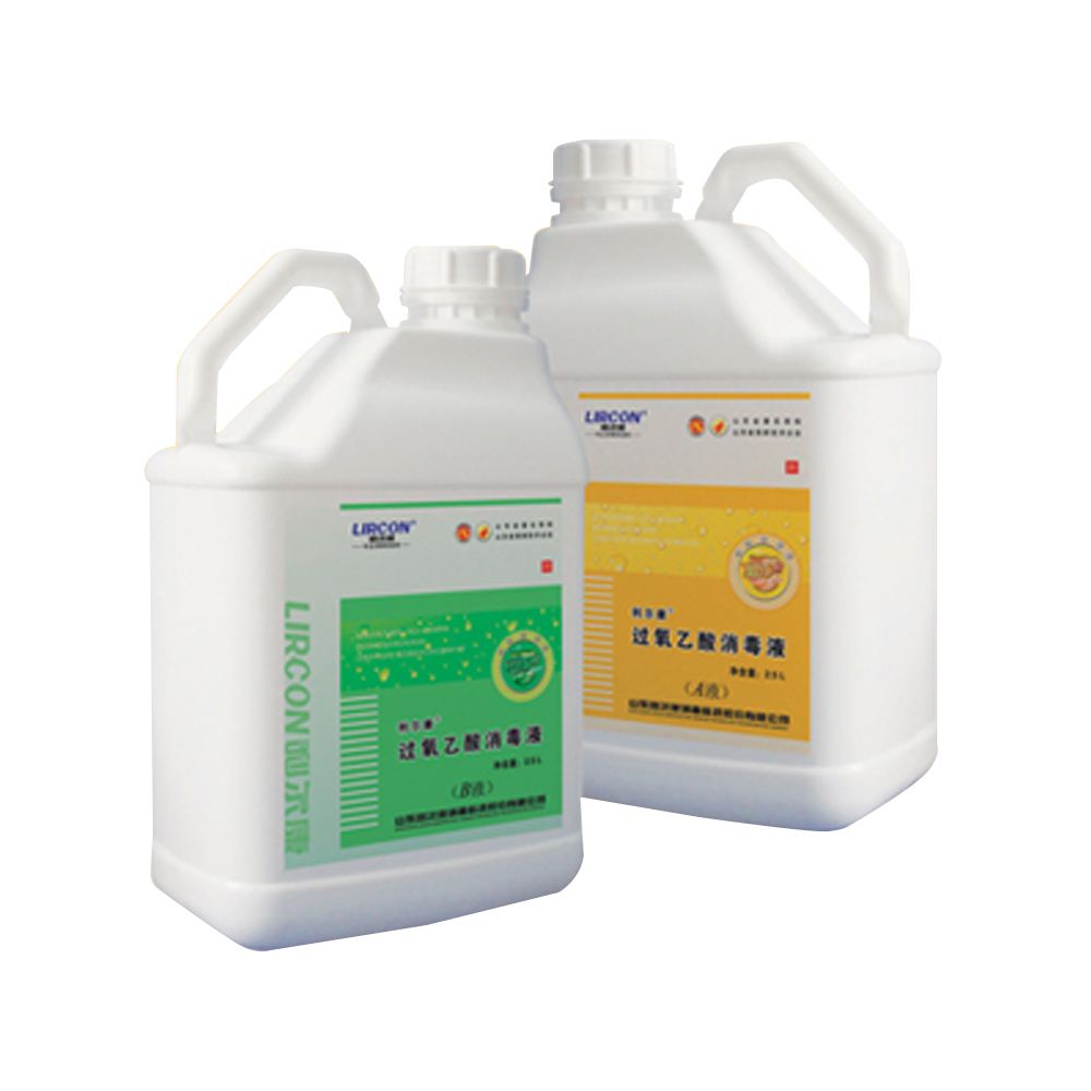 4.过氧乙酸:2%~5%的过氧乙酸溶液,可喷雾消毒棚圈、场地、墙壁、用具、车船、粪便等。