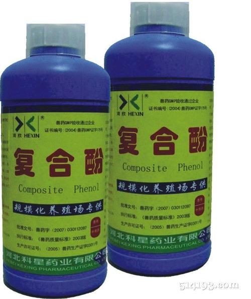 5.复合酚:复合酚100倍~300倍液,适用于消毒畜舍、场地、污物等。